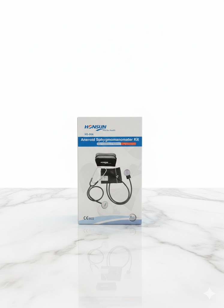 The Aneroid Sphygmomanometer Kit is a manual blood pressure measuring device designed for accurate and reliable readings. It includes a durable aneroid gauge, inflatable cuff, bulb, and stethoscope, making it ideal for clinical use, medical students, and home blood pressure monitoring.