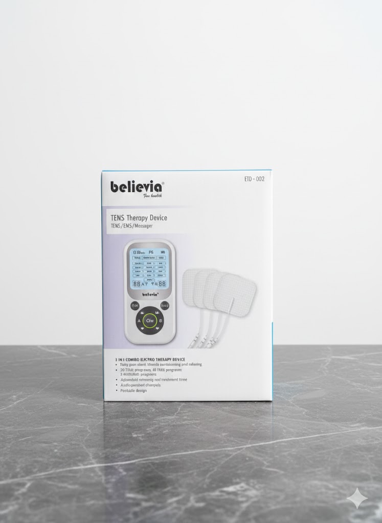 The Believia Tens Therapy Device Etd-002 is a cutting-edge electronic device designed to provide safe and effective pain relief through Transcutaneous Electrical Nerve Stimulation (TENS) therapy. This portable device is suitable for at-home use and offers a non-invasive alternative to traditional pain management methods