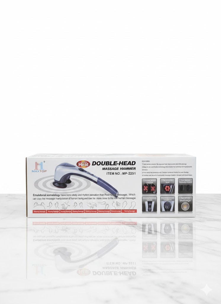 The Double Head Massage Hammer is a handheld therapy tool designed to relieve muscle pain, stiffness, and fatigue. Its dual massage heads help stimulate blood circulation and relax muscles, making it ideal for use on the back, shoulders, legs, and other body areas at home.
