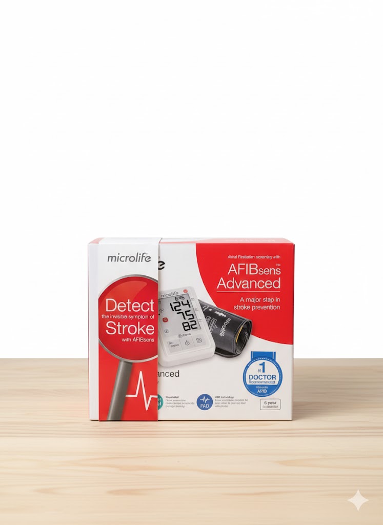 The Micro life AFIB sensĀ® Advanced is an advanced blood pressure monitor with built-in atrial fibrillation (AFIB) detection technology. It measures blood pressure accurately while helping detect irregular heart rhythms early, supporting better heart health monitoring at home or in clinical settings.